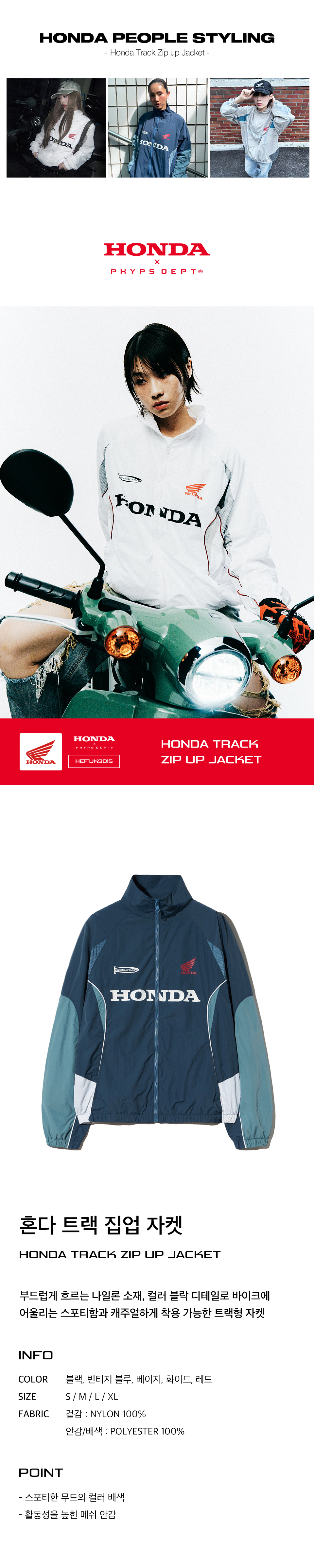 혼다 트랙 집업 자켓 빈티지블루