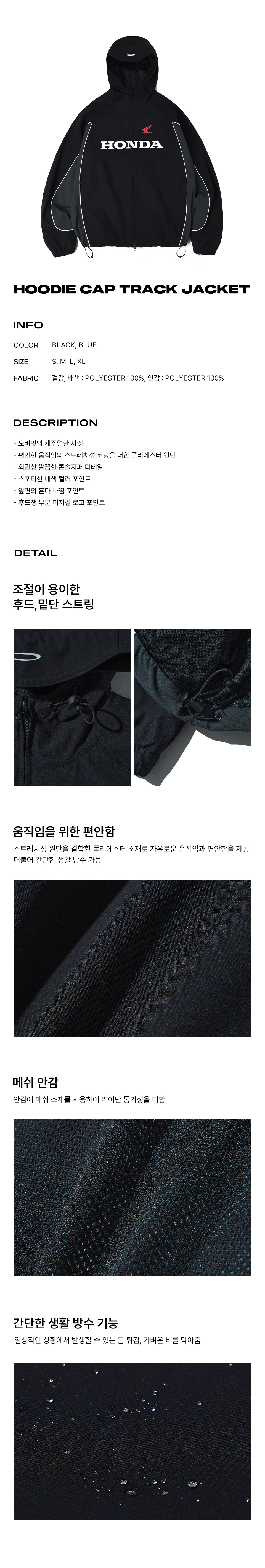 혼다 후디 캡 트랙자켓 블랙