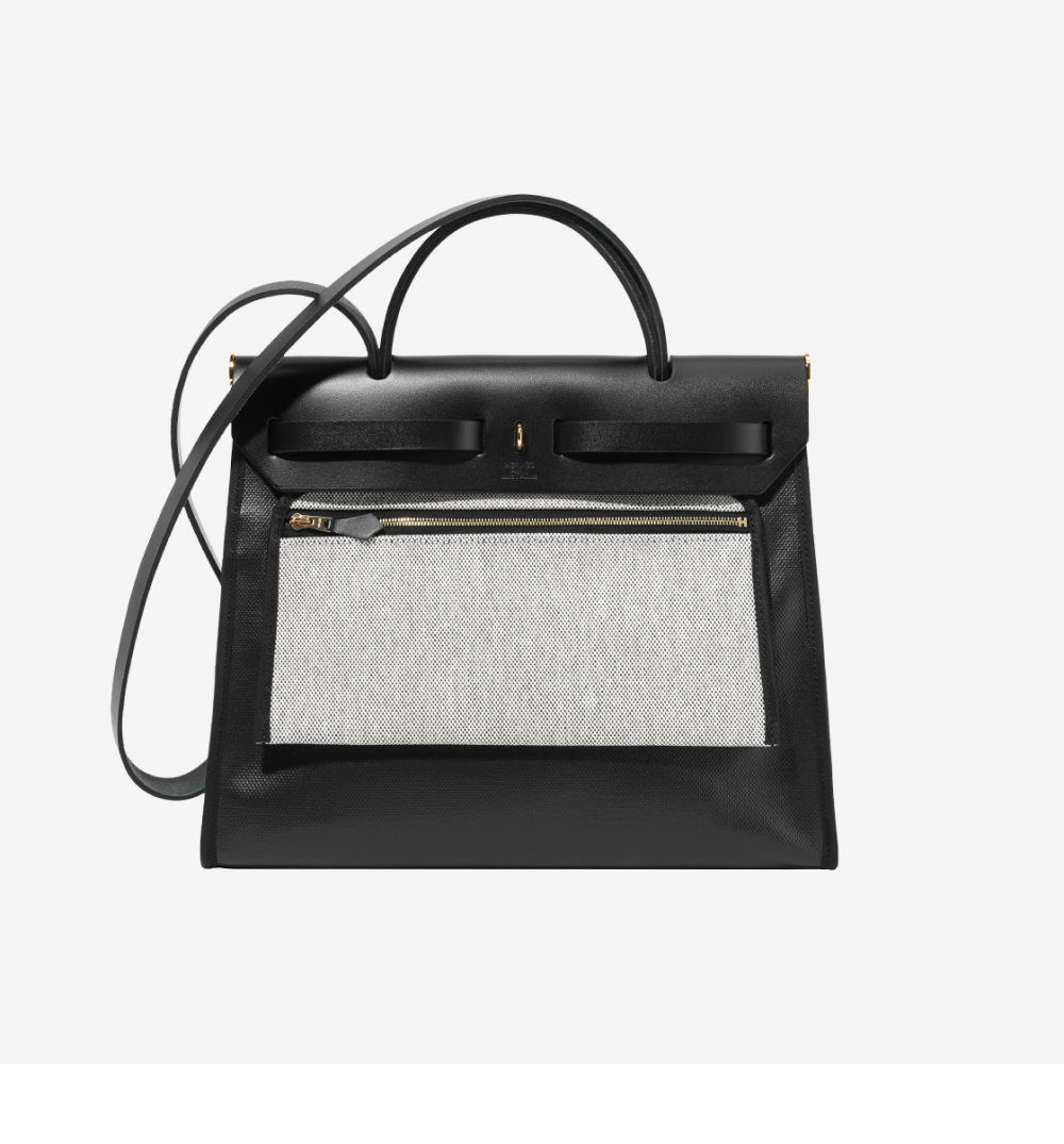 Hermes Herbag Zip 31 Bag Sellier H Berlin Canvas Hunter Cowhide & Gold Noir Ecru