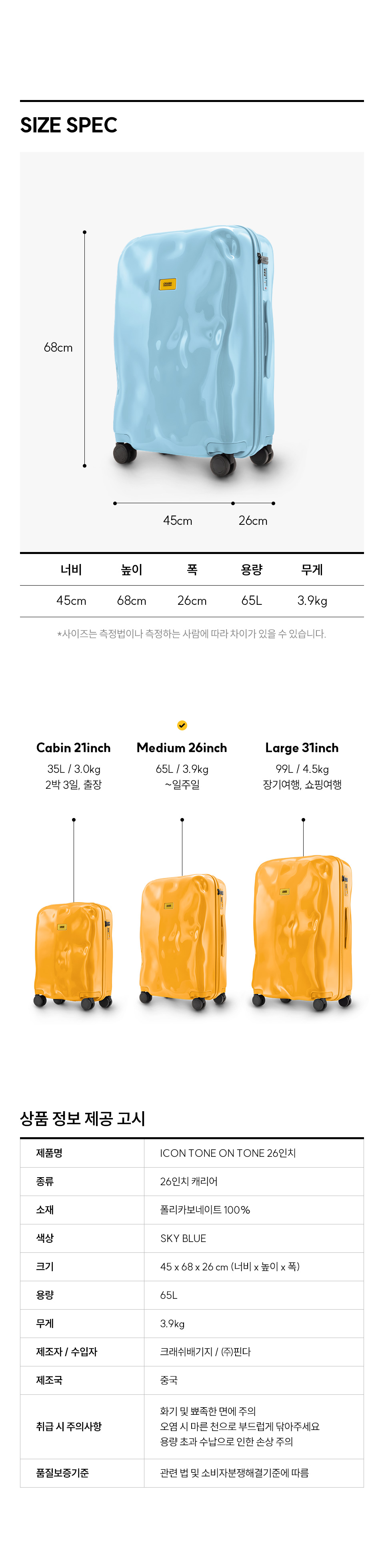 크래쉬배기지 아이콘 톤온톤 미디움 26인치 캐리어 스카이 블루