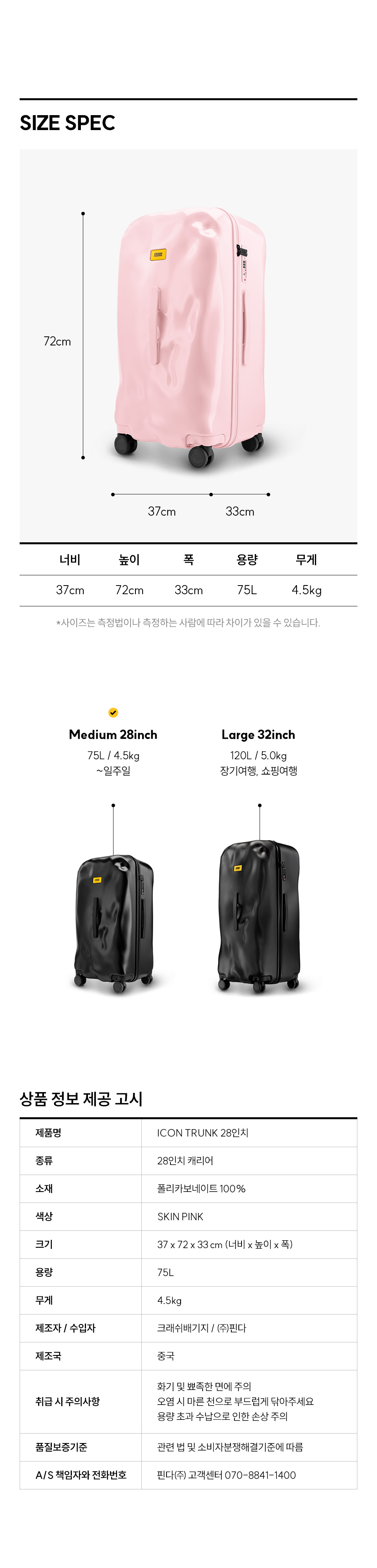 크래쉬배기지 아이콘 트렁크 미디움 28인치 캐리어 스킨 핑크