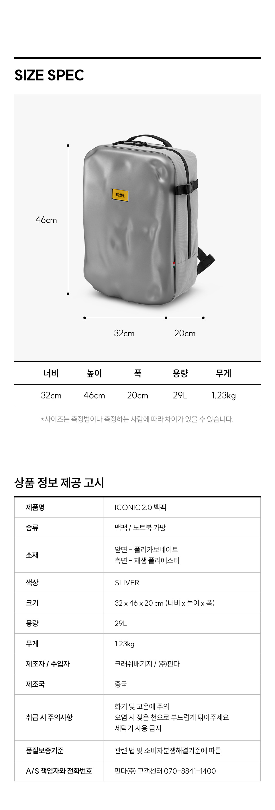 크래쉬배기지 아이코닉 2.0 백팩 포레스트 실버