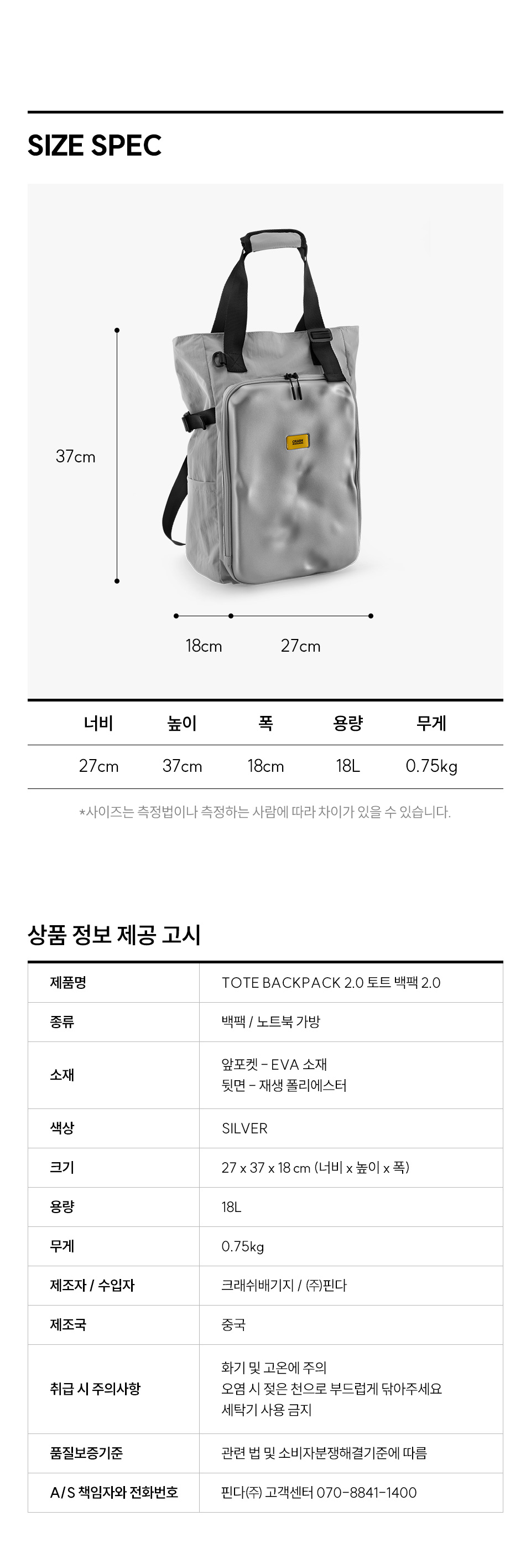 CRASH BAGGAGE Tote Backpack 2.0 Silver