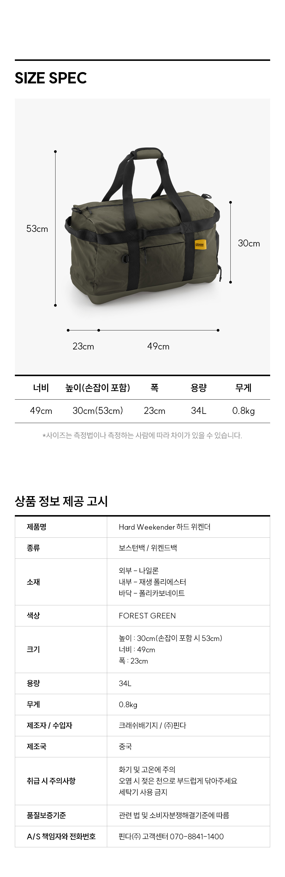 크래쉬배기지 하드 위켄더 더플백 포레스트 그린