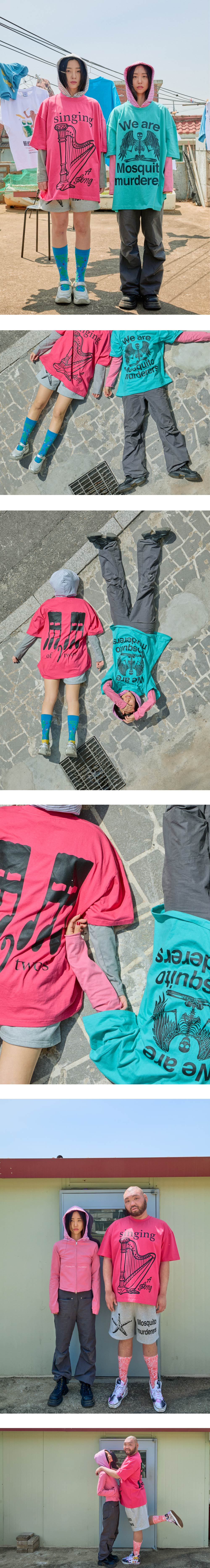 162cm (5’4”) / 51kg (112lb)<br>161cm(5’2”) / 44kg(97lb)<br>181cm (5’11”) / 90kg (198lb)<br><br>- 목 늘어남을 방지하기 위한 넥라인 해리처리<br>- 갈라삼봉 봉제법으로 내구성이 우수하며 완성도 높은 실루엣<br>- 비침없이 부드러우며 구김에 강한 100% 면 텍스처<br>- 덤블워싱, 텐타 가공을 거쳐 오랜시간 착용 및 세탁시에도 옷의 변형을 최소화<br>- 벗겨지거나 바래지 않는 선명한 프린팅 <br><br>Mosquito murderers의 모든 의류는 한땀 한땀 사람의 손으로 탄생됩니다.<br>세탁시 케어라벨을 확인해 주시고, 프린팅의 손상을 최소화 하기 위해 옷을 뒤집어 세탁하는 것을 권장합니다.