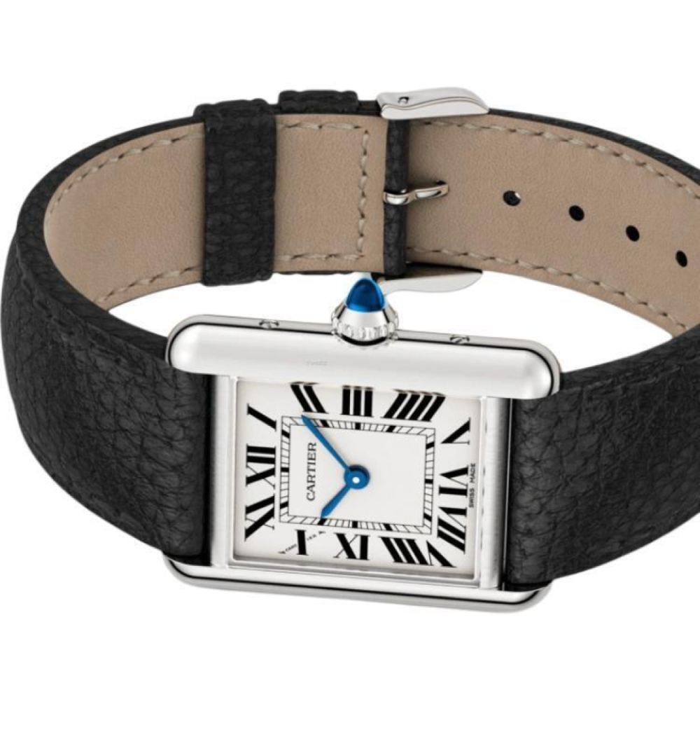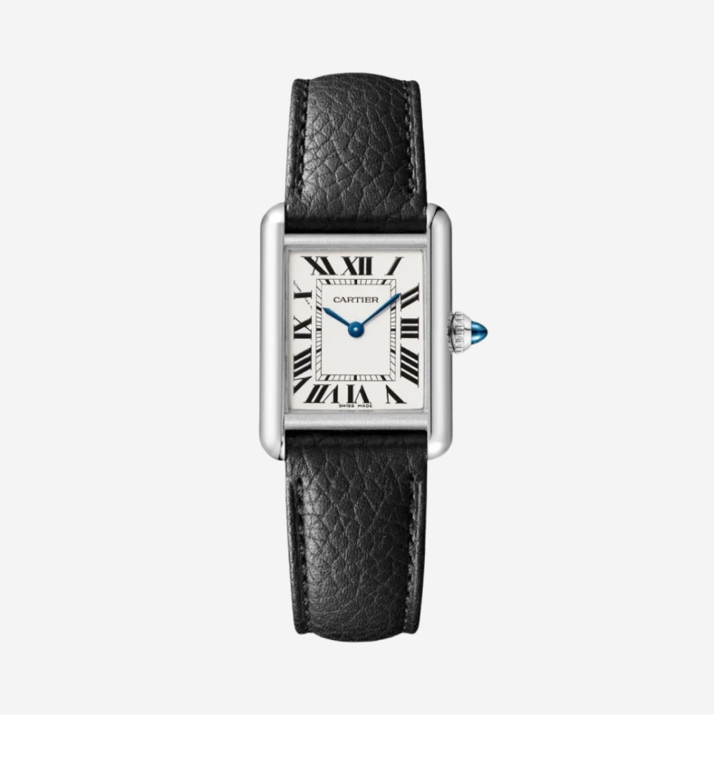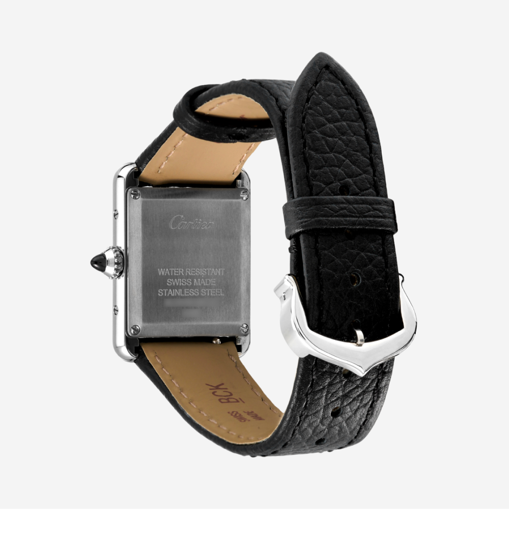까르띠에 탱크 머스트 워치 스몰 쿼츠 스틸 카프스킨 블랙