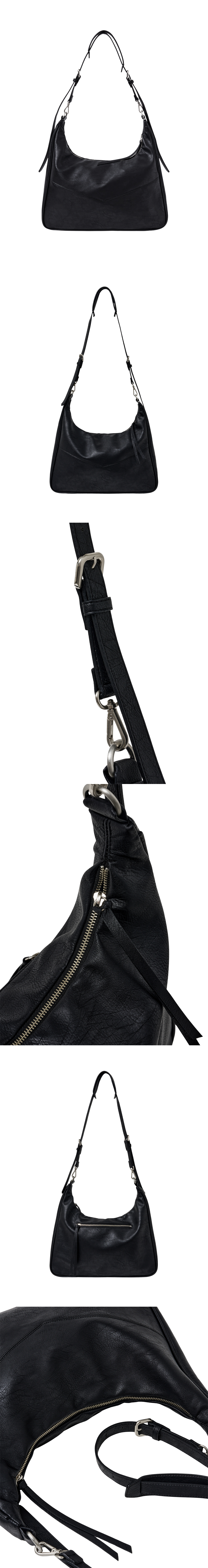 유연한 쉐입의 페이크 레더 소재로 제작된 숄더&크로스 겸용 백입니다. 더블 스트랩 디테일이 실루엣의 포인트가 되어주며 데일리하게 활용 가능합니다. 가볍고 유연한 바디감과 단정한 곡선 실루엣이 조화를 이루며, 미니멀한 스타일부터 젠더리스한 무드까지 다양한 연출이 가능합니다. - DETAIL - 숄더 & 크로스 2WAY 연출 더블 스트랩 디테일 곡선형 쉐입 메탈 지퍼 여밈 내부 포켓 디테일