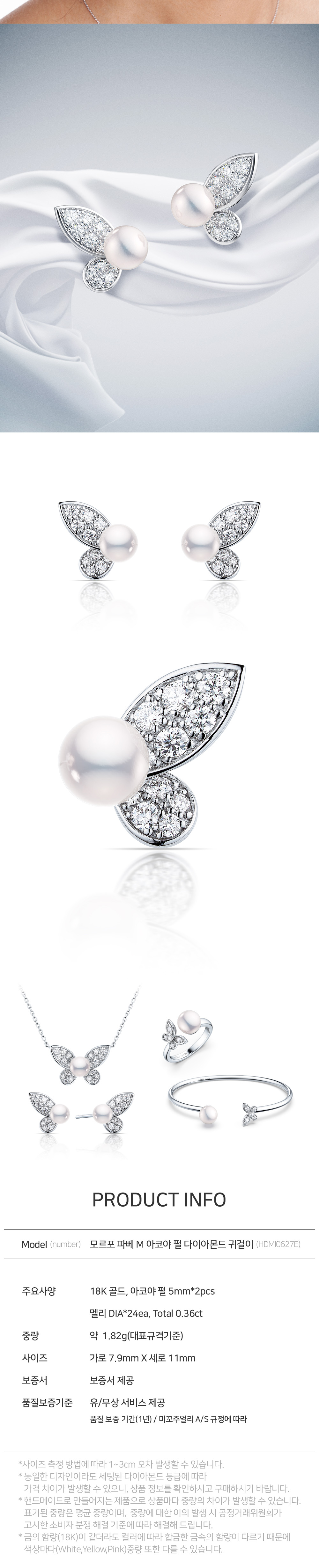 미꼬 모르포 파베 M 아코야 펄 다이아몬드 귀걸이 화이트 골드