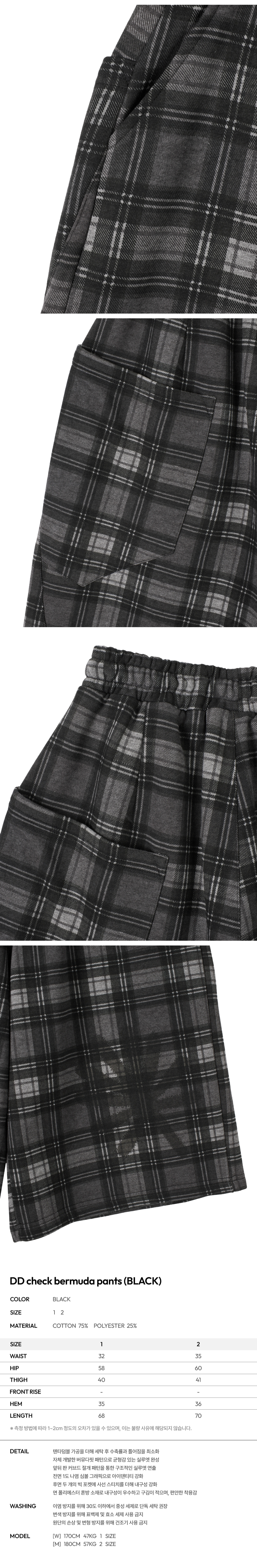 단델 체크 버뮤다 팬츠 블랙