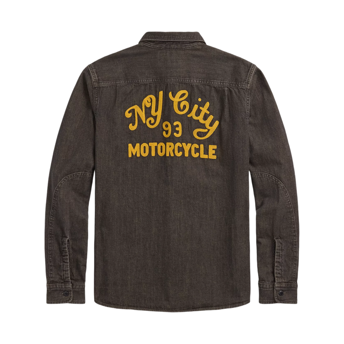 더블알엘 자수 데님 워크 셔츠 워시트 블랙