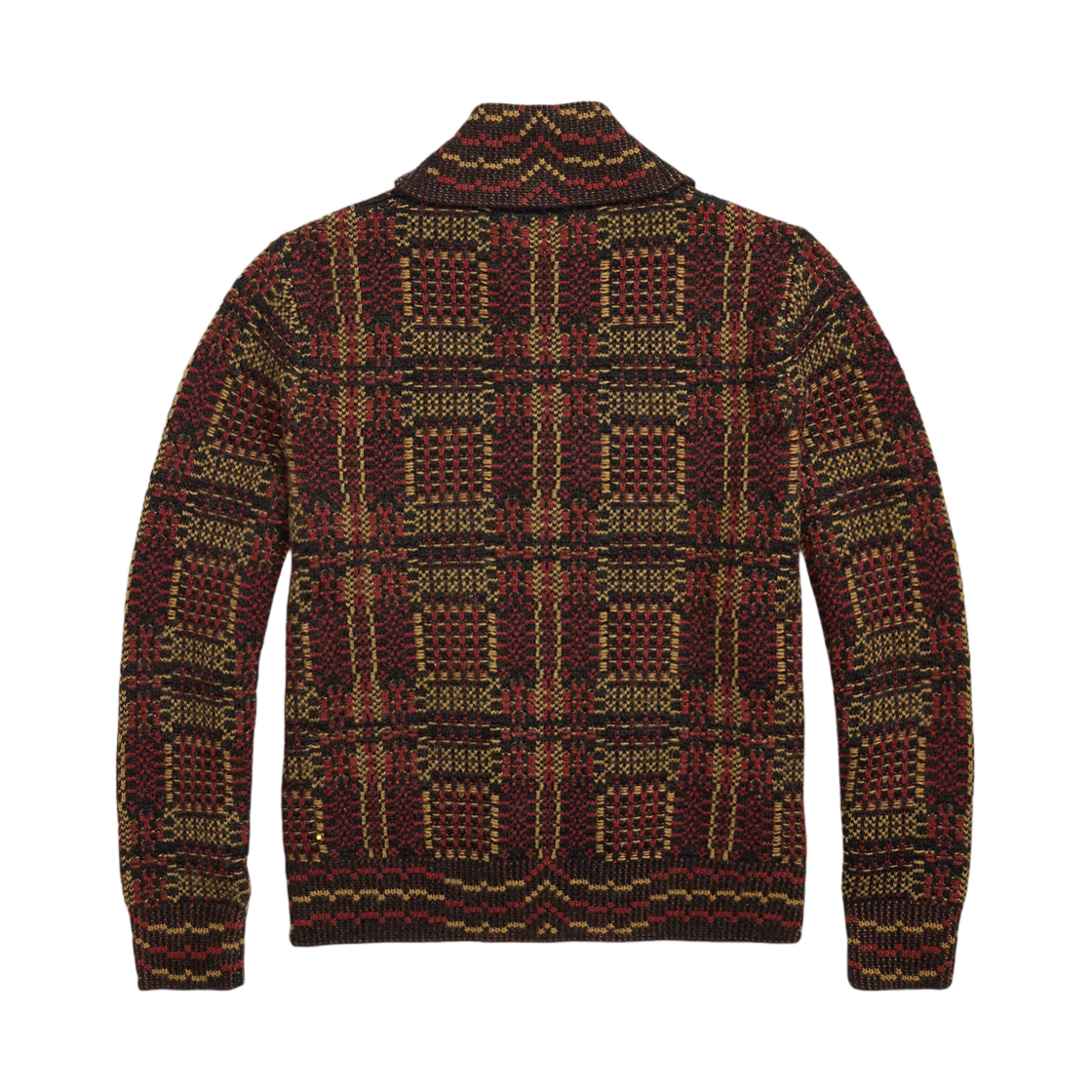 Double RL Wool Jacquard Full Zip Cardigan Red Multi