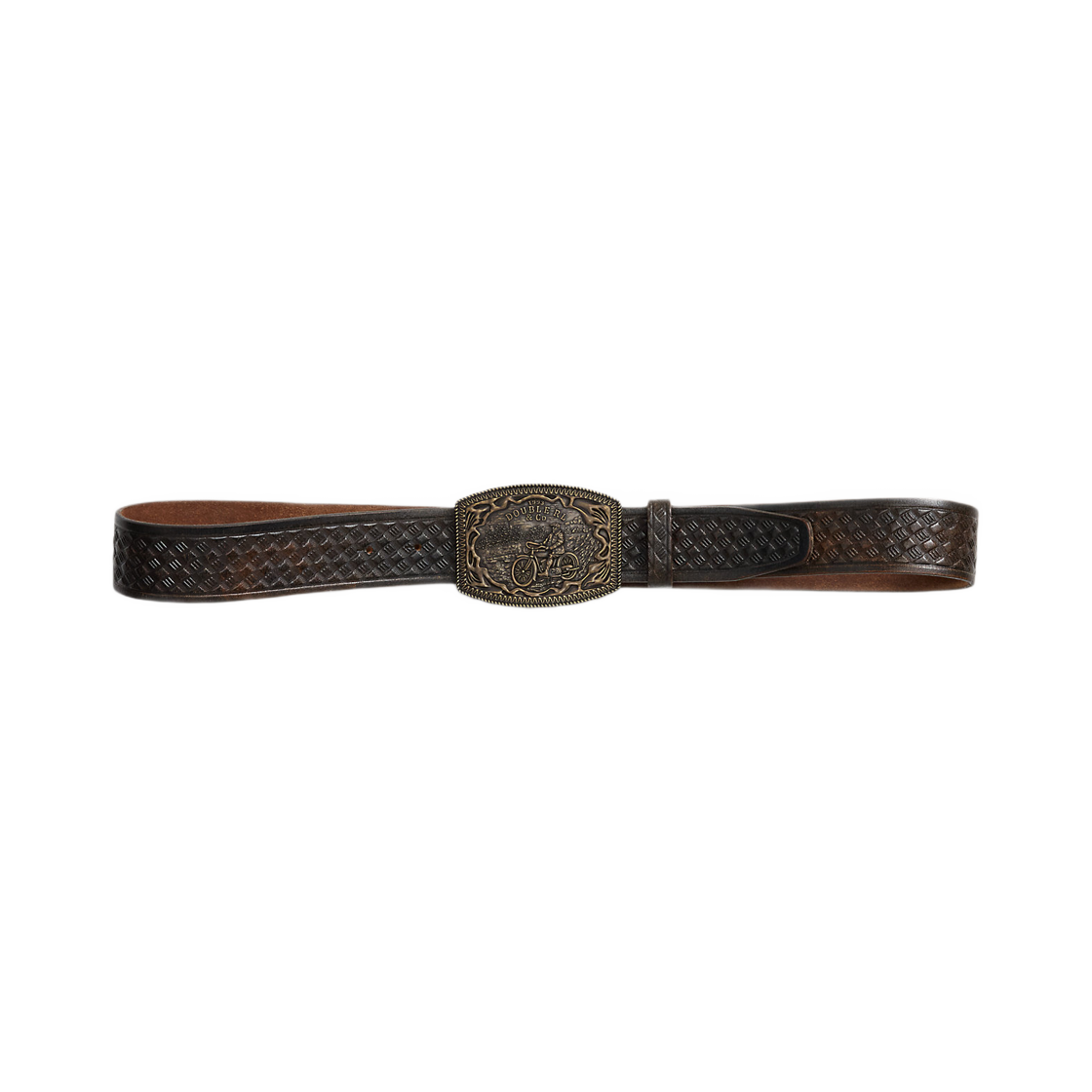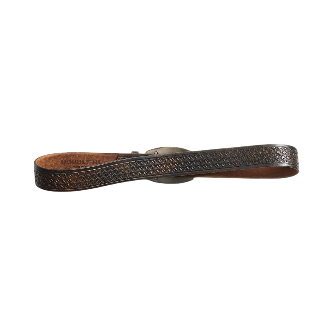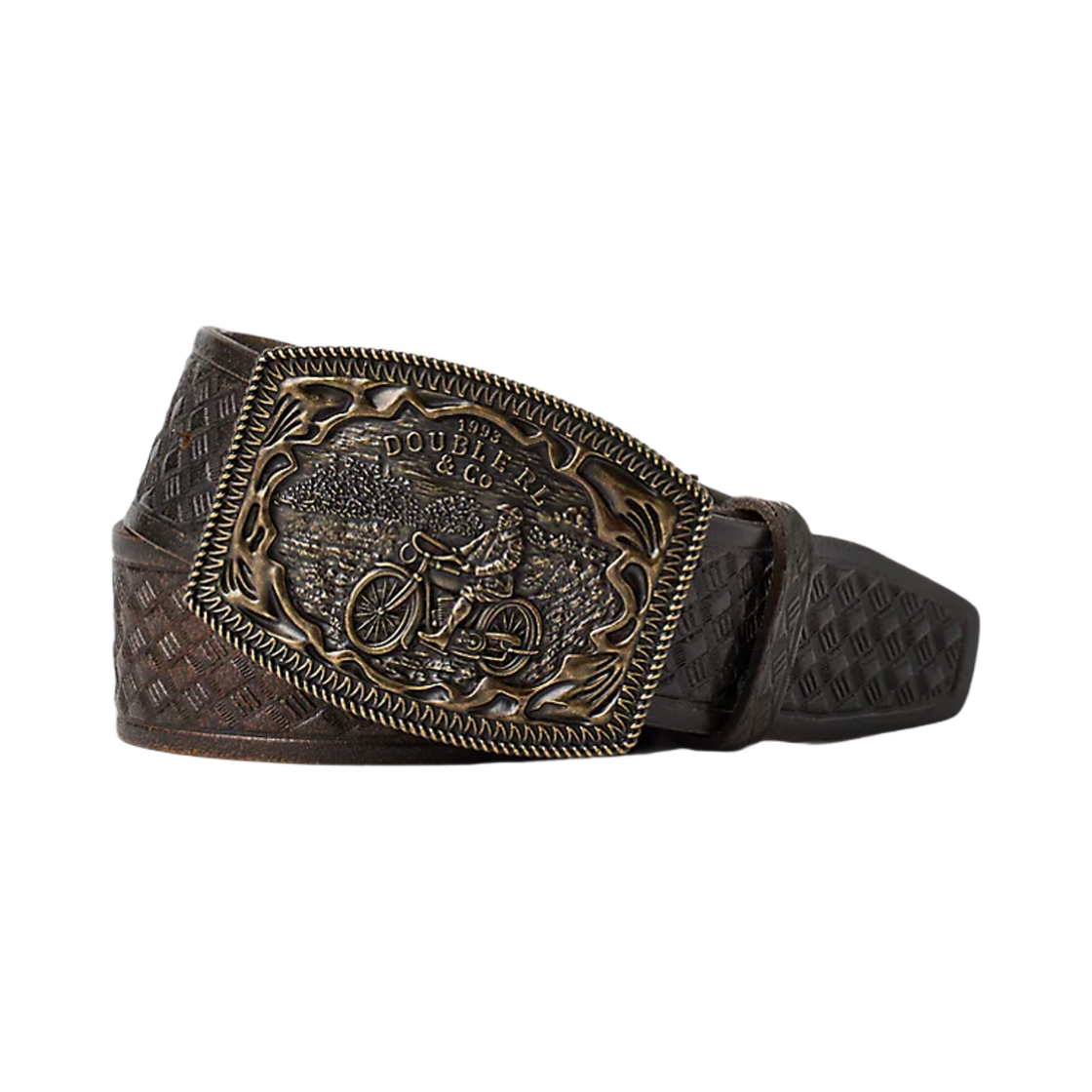 Double RL Basket Weave Embossed Leather Belt Black RRL Vintage Brass