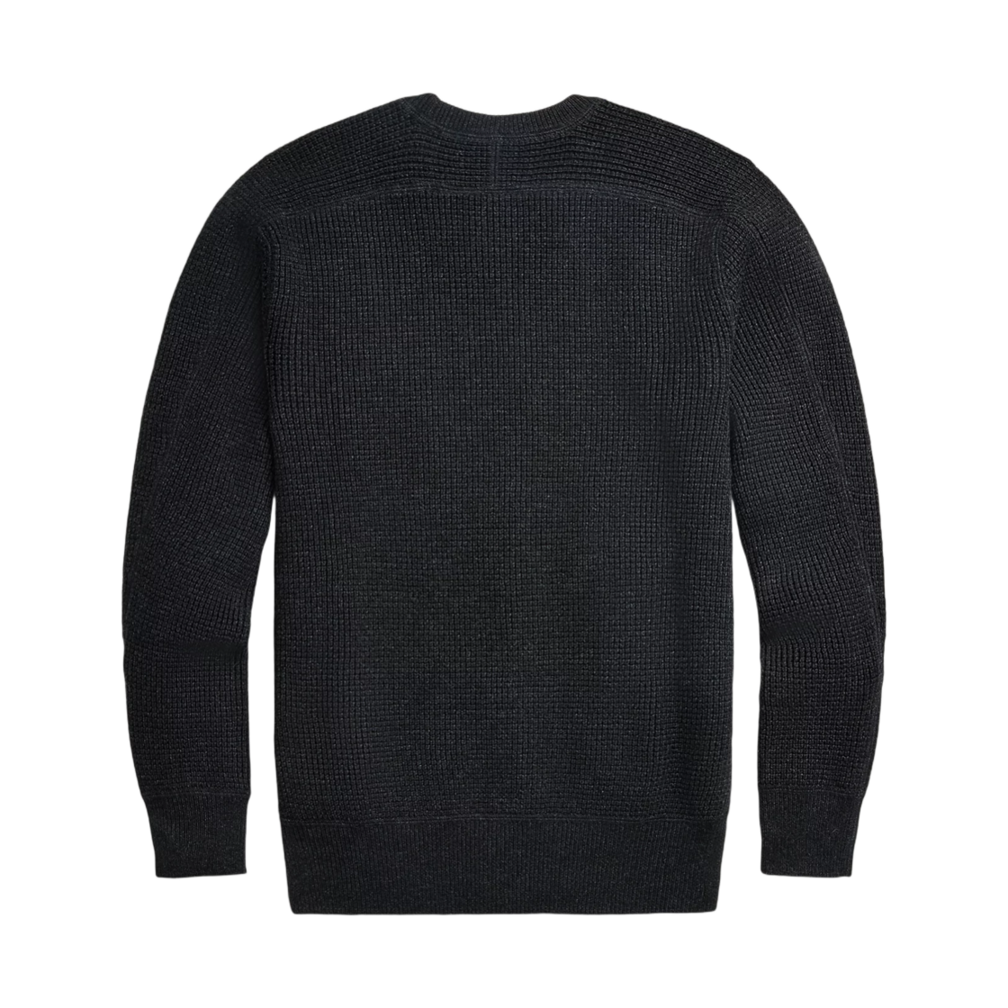 더블알엘 와플 니트 코튼 울 스웨터 블랙 헤더