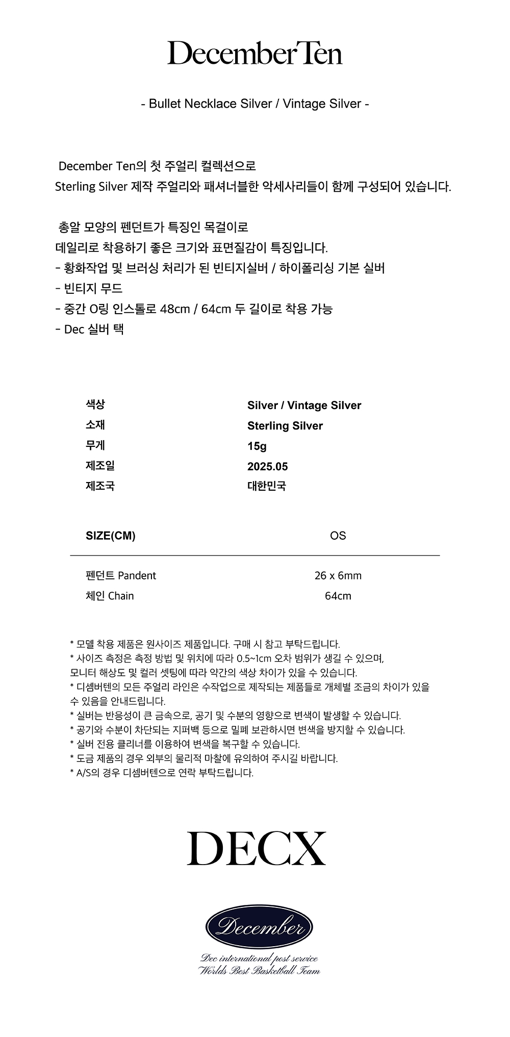 디셈버텐 불렛 네크리스 실버/빈티지실버