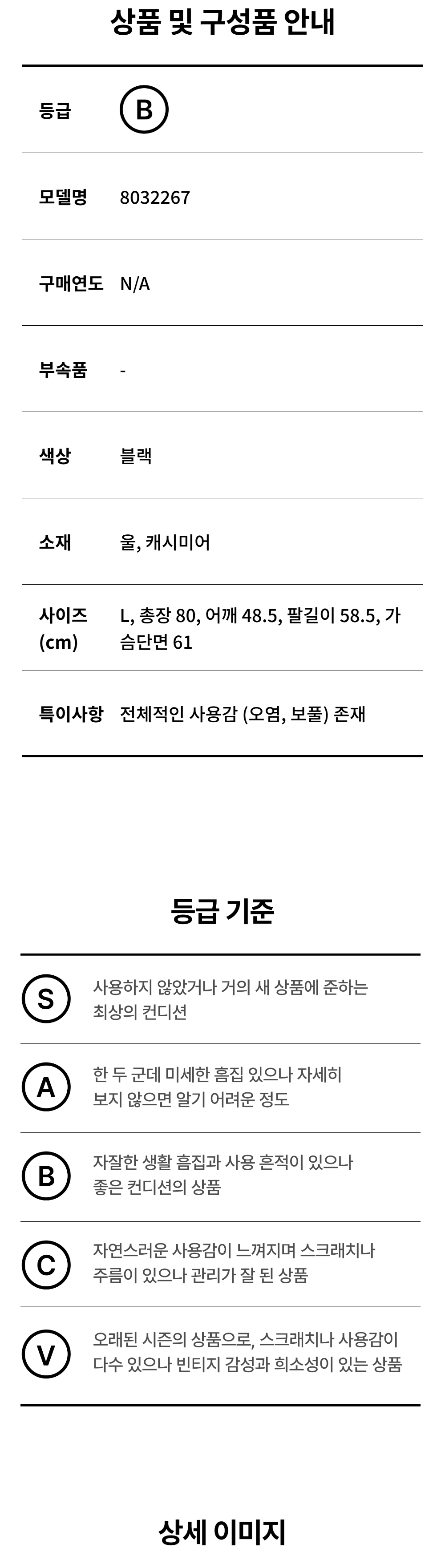 버버리 8032267 니트 카디건 풀오버 캐시미어 블랙