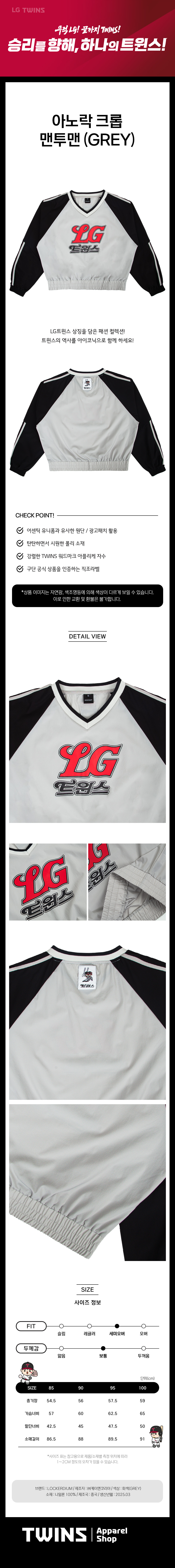 LG트윈스 아이코닉 아노락 크롭 맨투맨 그레이