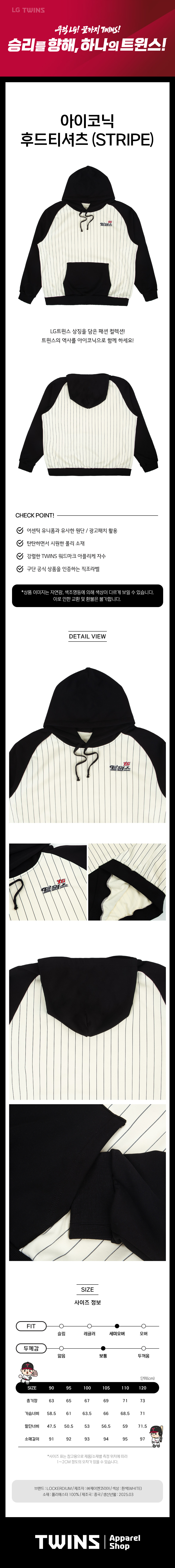 LG트윈스 아이코닉 후드티셔츠 스트라이프