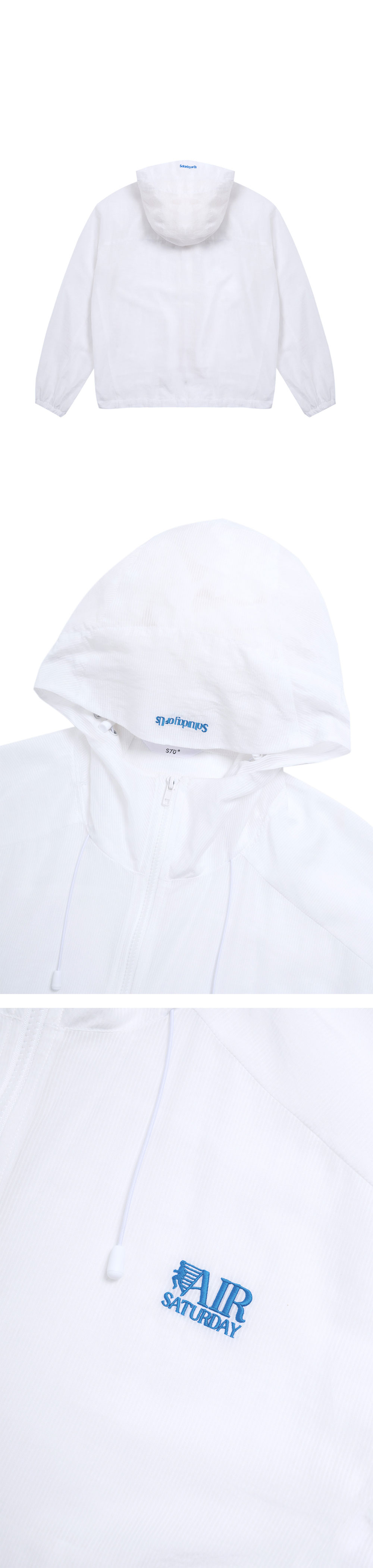 - 스트라이프 패턴 - 앞판 자수 디테일 - 후드 자수 디테일 - 후드 스트링 디테일 - 소매, 밑단 밴딩 디테일 - 밑단 내부 스트링 디테일