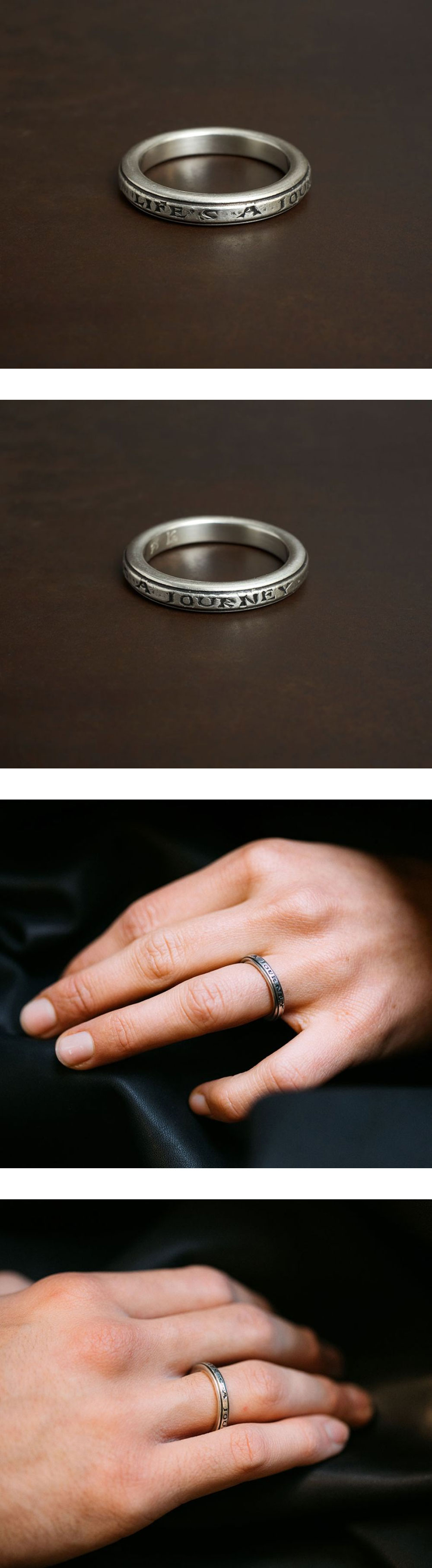 유니크한 문구가 적힌 베르크슈타트 뮌헨의 링 -‘LIFE IS A JOURNEY’ 문구가 새겨진 실버 링 -모든 것은 흐름 속에 있고 변화한다는 유쾌한 메시지