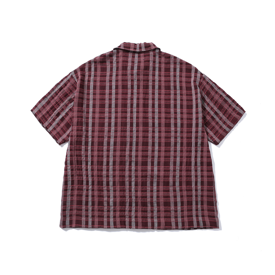 발루트 링클 하프 슬리브 카라 가디건 레드 체크