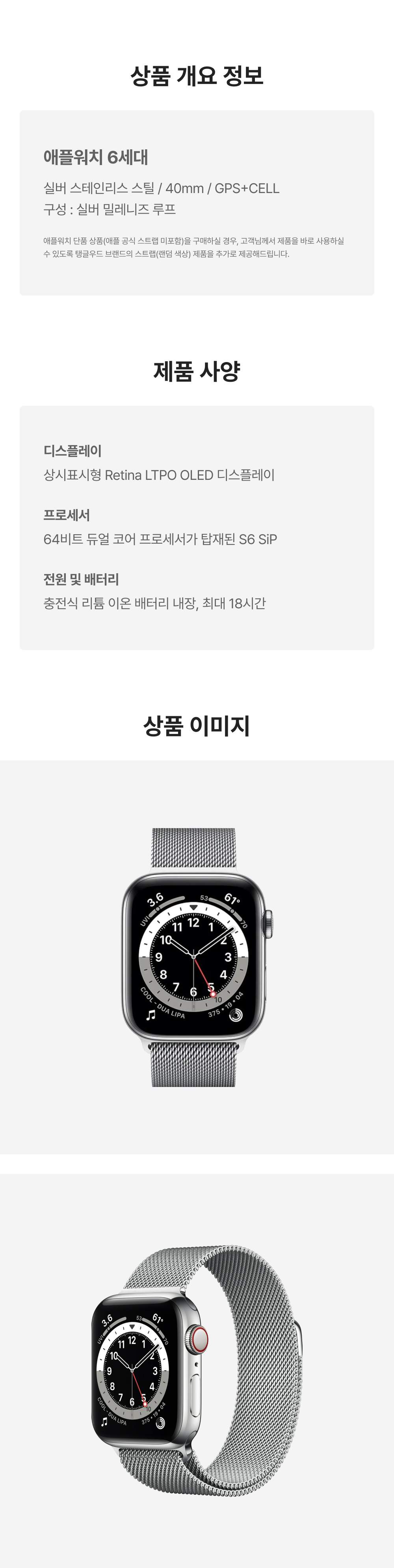 [B등급] 리퍼비시 애플워치 6 40mm 셀룰러 실버 스테인리스 스틸 케이스 밀레니즈 루프 실버