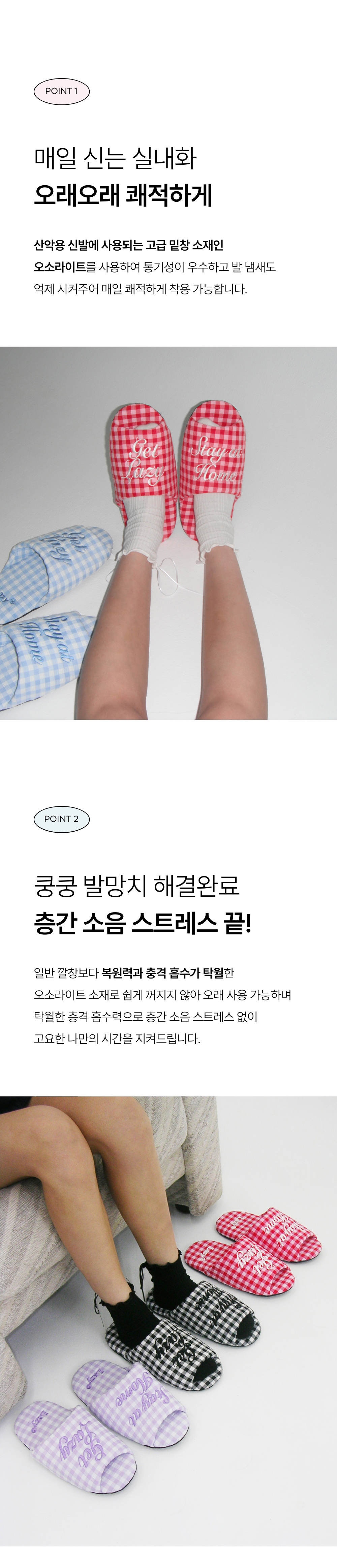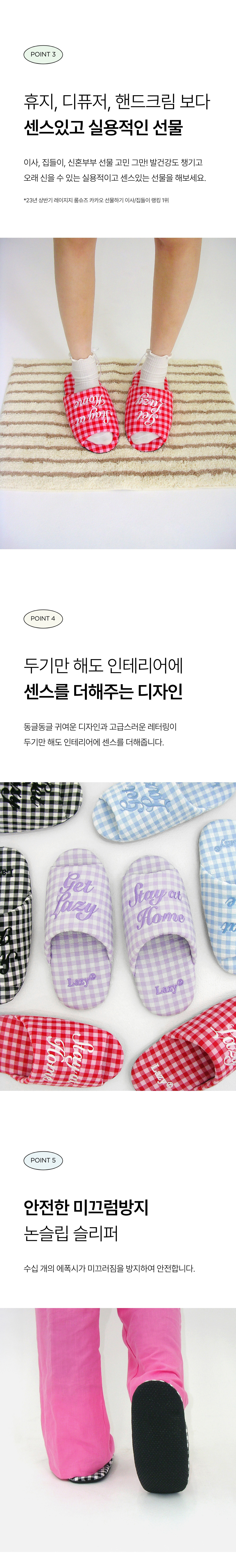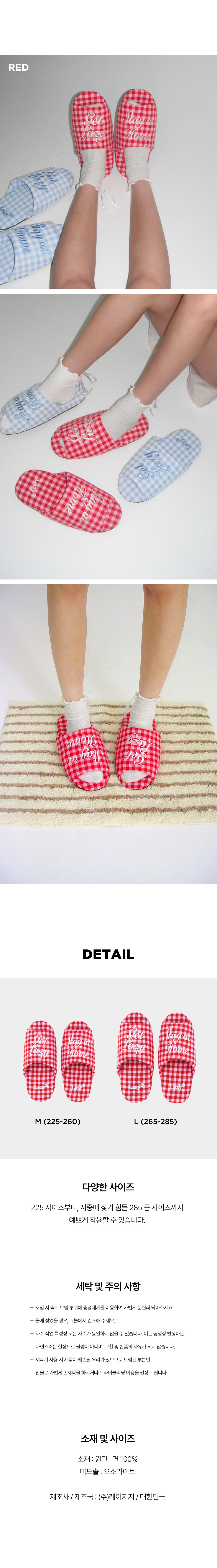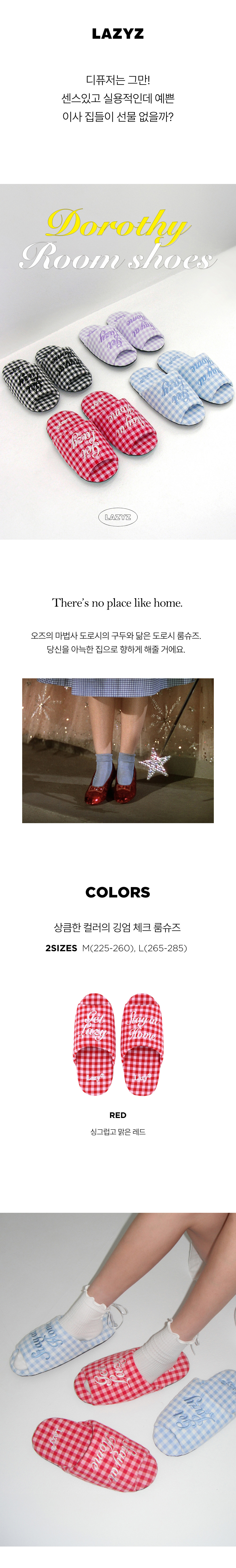 레이지지 도로시 깅엄체크 룸슈즈 레드