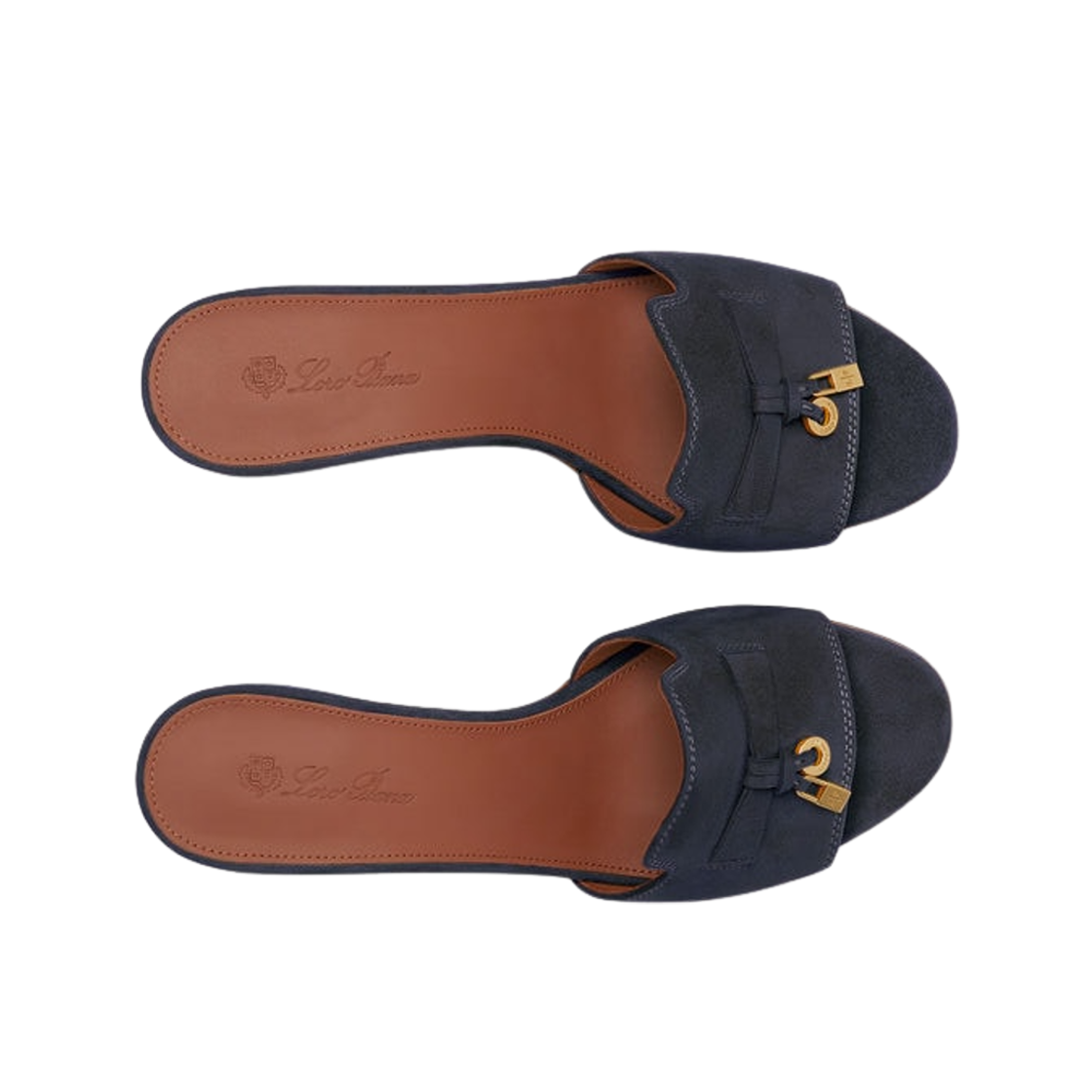 (W) Loro Piana Suede Goatskin Summer Charms Sandal Navy Blue