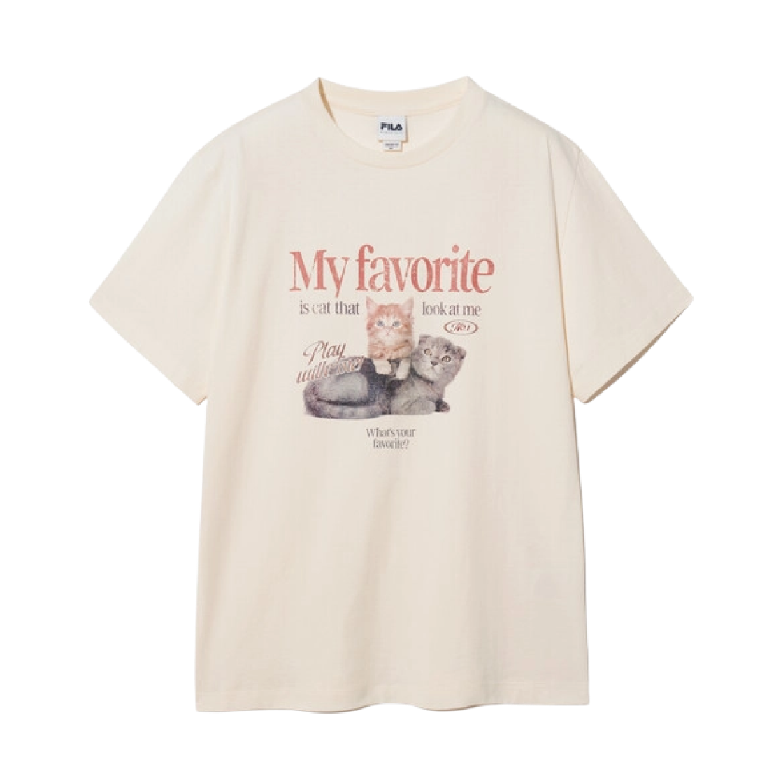 (W) 휠라 오버핏 고양이 티셔츠 화이트 아이보리