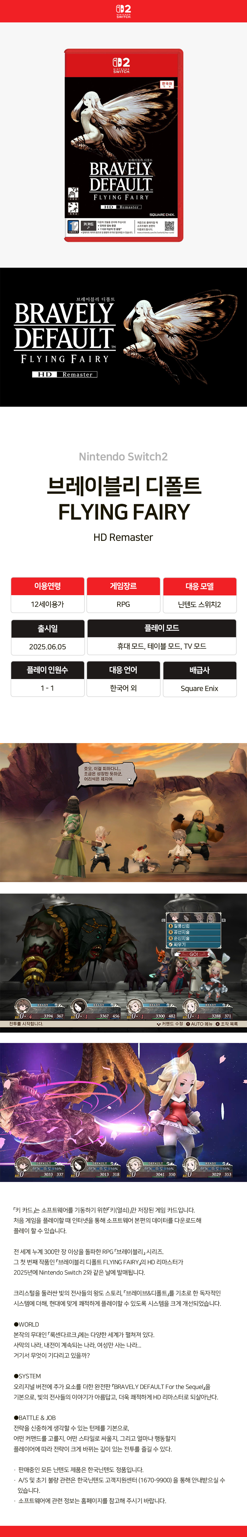 닌텐도 스위치 2 브레이블리 디폴트 플라잉 페어리 HD 리마스터