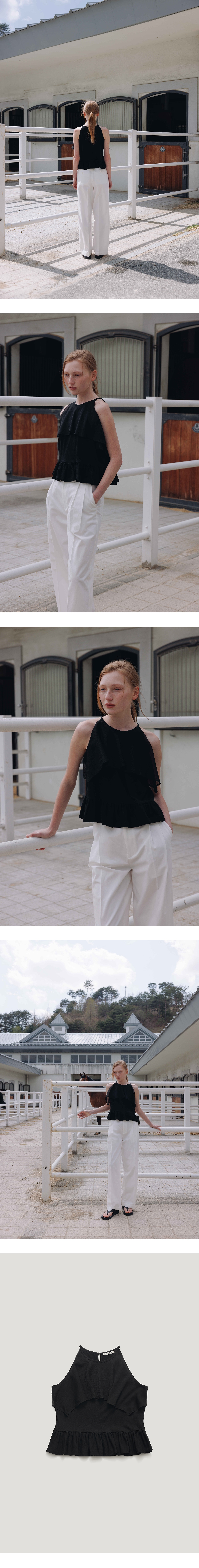 탄탄하고 신축성이 좋은 코튼소재와 은은하게 비치는 시어한 소재가 덧대 어진 홀터넥 블라우스입니다.어깨 라인이 슬림해보이는 실루엣으로 여성 스러움과 세련된 무드를 주며,다양한 하의 아이템과 매칭하여 포인트 주기 좋은 블라우스입니다. TAMO wearing a size FREE. MODEL : HEIGHT 172 / BUST 39 / WAIST 30 / HIPS 44