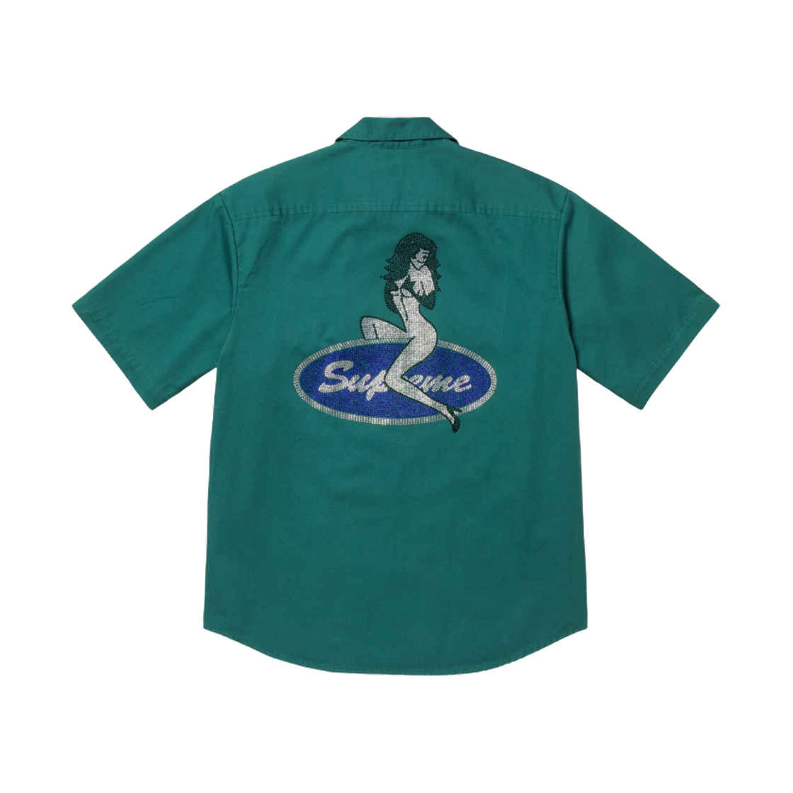 Supreme Rhinestone Pin Up S/S Work Shirt Work Green - 25SS