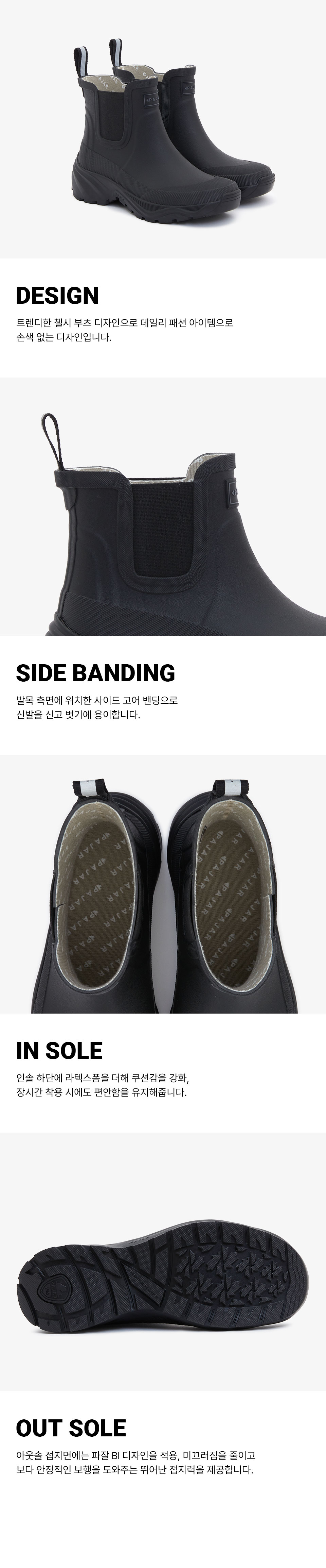 파잘 메이플 트레드 첼시 엣지 레인 부츠 블랙