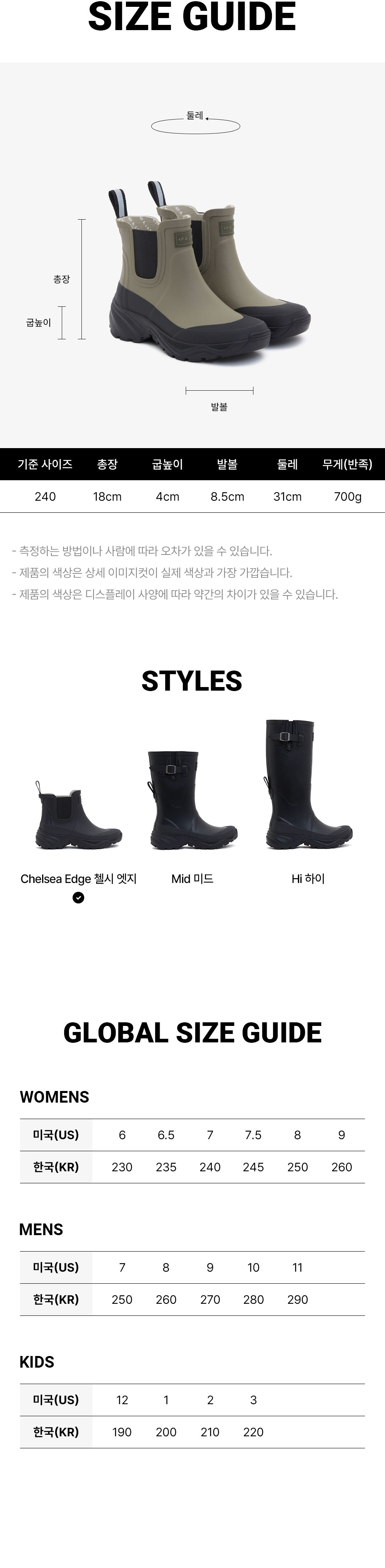 파잘 메이플 트레드 첼시 엣지 레인 부츠 올리브