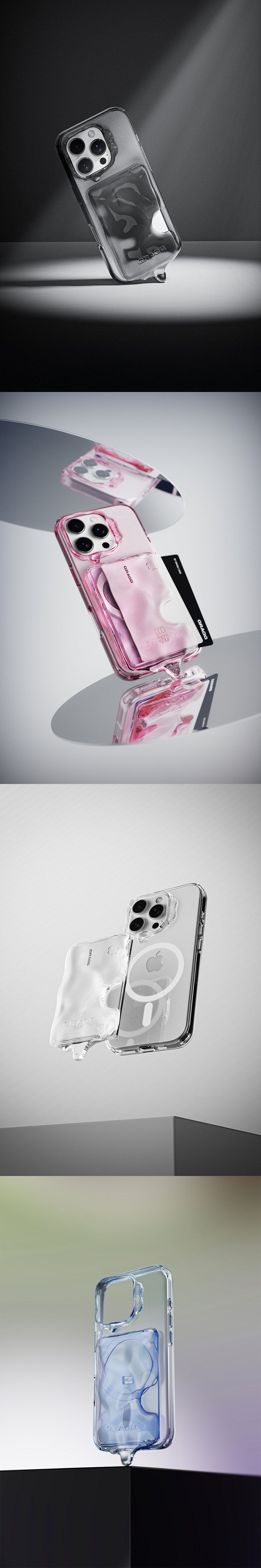 그래그 맥세이프 더블 레이어스 케이스 & 카드 포켓 - 클리어 핑크