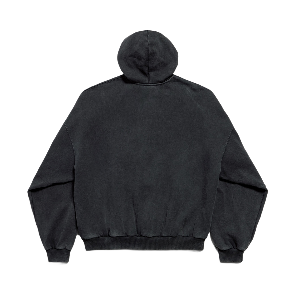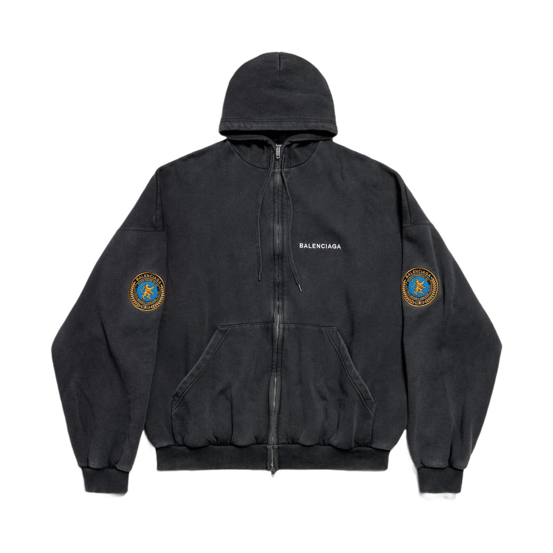 Balenciaga Uniform Patch Zip-Up Hoodie Large Fit Black Faded
