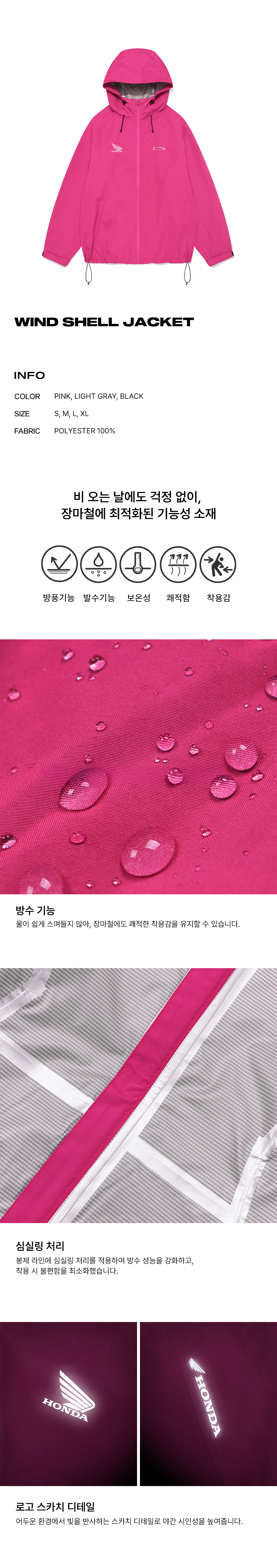 혼다 윈드 쉘 자켓 핑크
