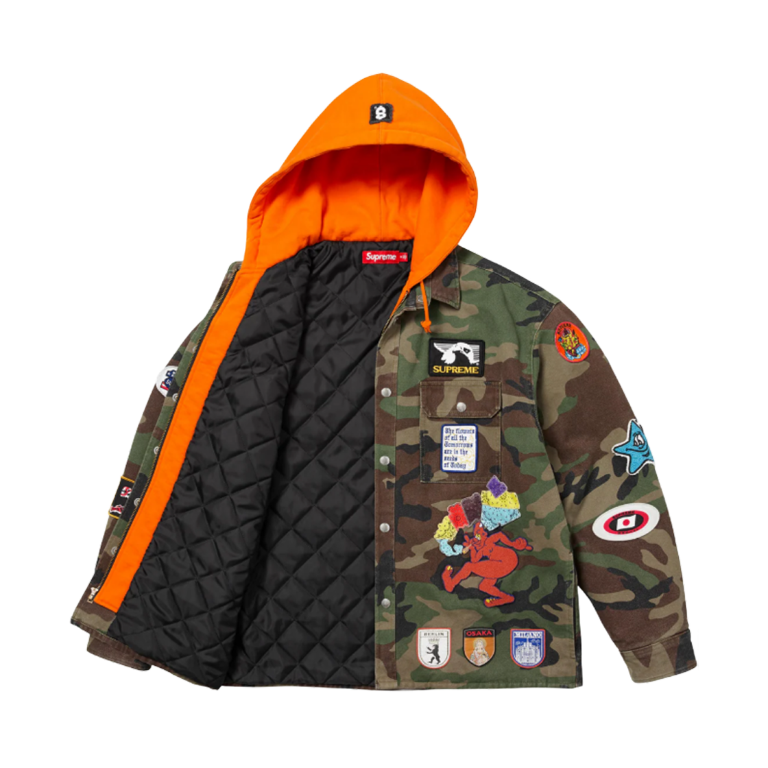 Supreme Patches Hooded Zip Up Shirt Woodland Camo - 25SS