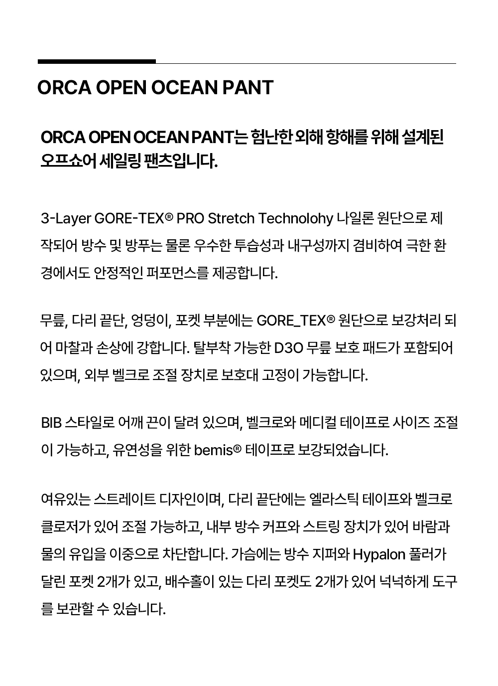세일레이싱 오르카 오픈 오션 팬츠_999