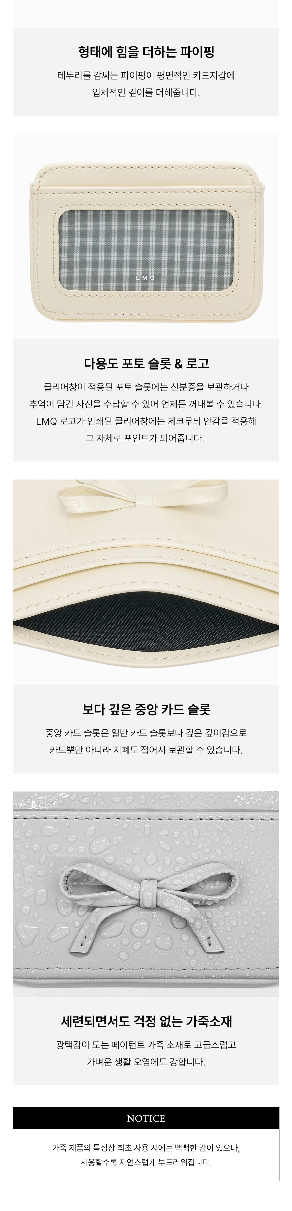 르마스크 리본 파이핑 소가죽 카드지갑 크림