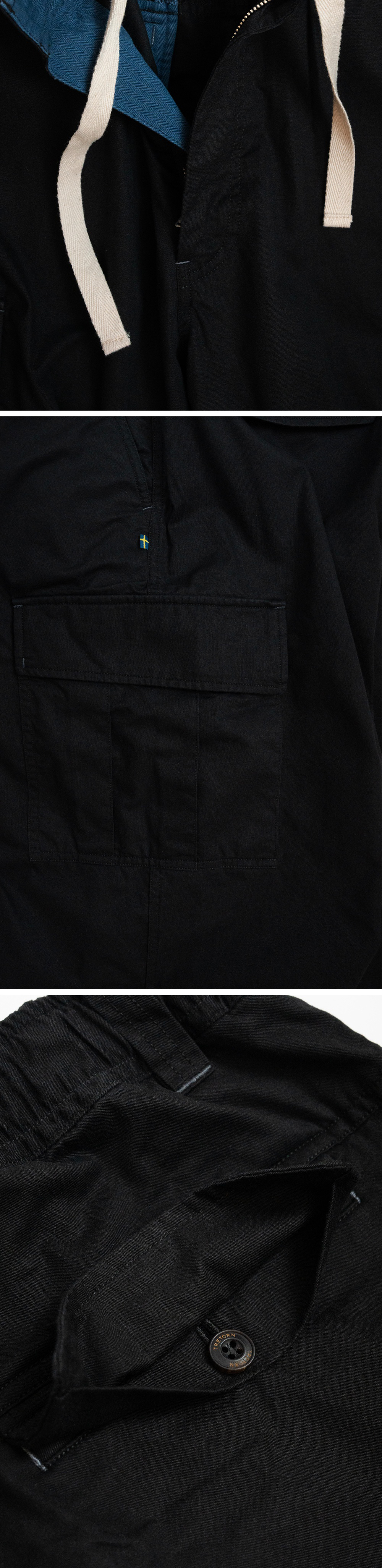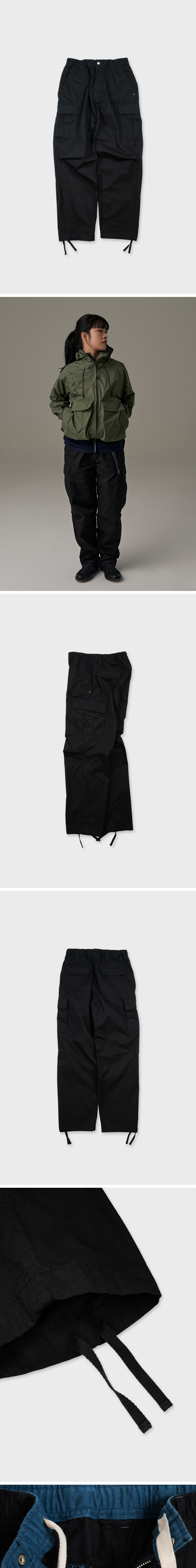 코튼 트윌 카고팬츠는 편안한 착용감이 인상적이며 허리 스트링으로 사이즈 조절이 가능하여 아웃도어 뿐만이 아니라 데일리룩으로도 부담 없이 착용할수 있는 아이템입니다. 사이즈 정보에 기재된 허리 너비는 허리 밴딩을 늘리지 않은 상태의 길이이며, 착용 시 약 4-6cm까지 늘어납니다.