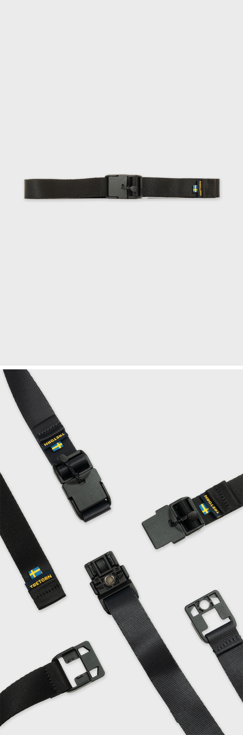 트레통 기어 벨트는 마그넷 기어 구조를 활용하여 손쉽게 원터치 방식으로 탈부착 가능합니다. 벨트 끝에 로고를 배치하여 스타일 룩의 포인트 요소로 활용할 수 있습니다.