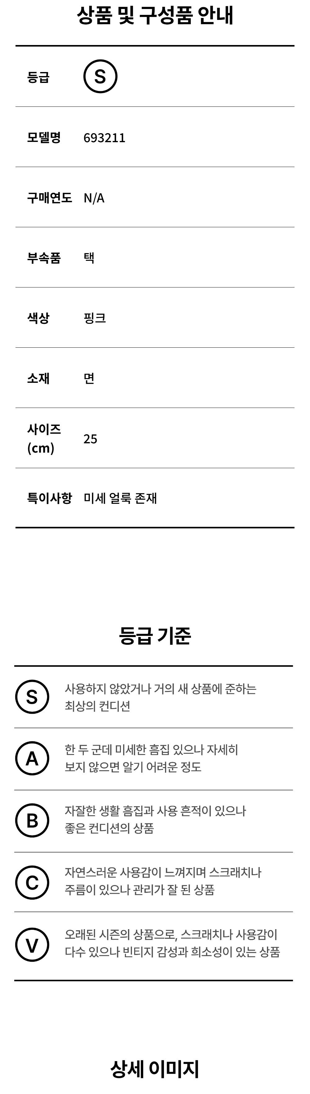 모든 상품(가죽, 의류, 잡화, 슈즈 등)은 사용자의 사용방법과 환경에 따라 변형, 변색이 될 수 있으니 반드시 취급 라벨에 표시된 관리 안내를 따르시길 권장 드립니다. 이는 정도의 차이가 있으며 과도한 체열과 땀, 습기, 빛, 마찰은 제품의 손상 및 변형을 일으킬 수 있으므로 주의하시길 바랍니다.