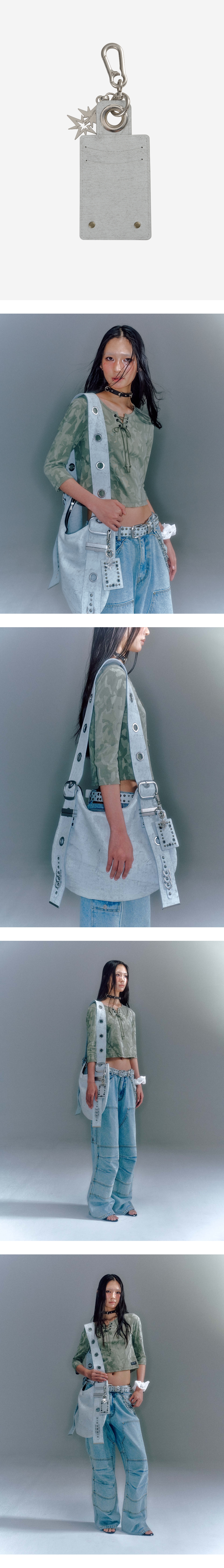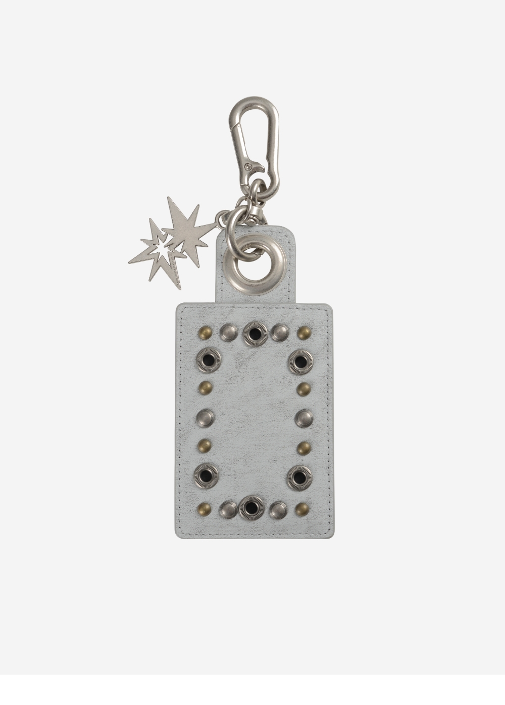 - 주름 가공이 들어간 양가죽 소재 사용 - 리벳 & 아일렛 장식으로 빈티지 무드 연출 - 베이컨트 시그니처 별 키링 레이어링 - 카드 최대 2개까지 수납 가능