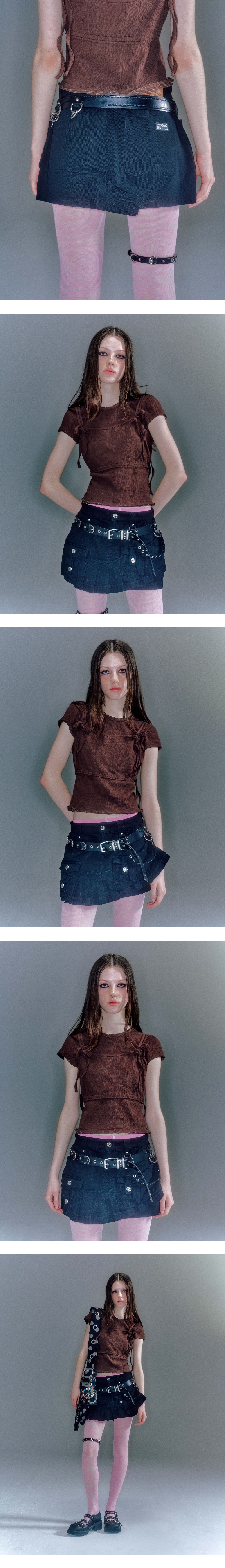 - 플리츠 장식의 A라인 미니 스커트 - 전면 빅포켓 & 미니 포켓 디테일로 카고 스타일 연출 - 스트랩 하네스로 빈티지 무드 연출 - 빈티지한 질감을 위해 워싱 가공