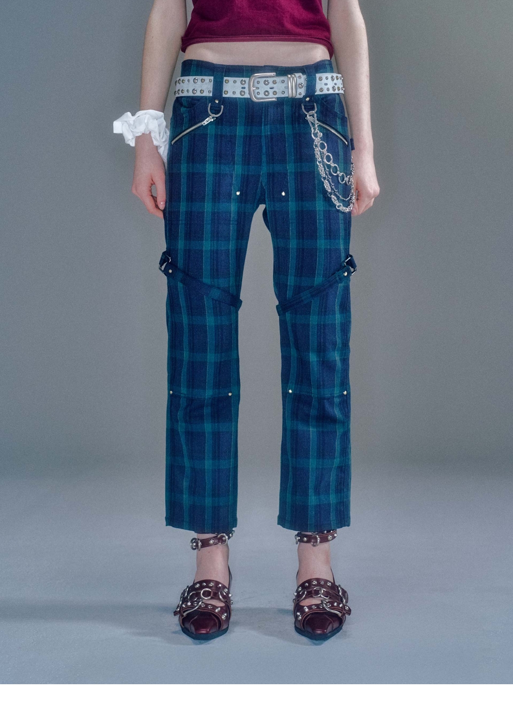 베이컨트 아카이브 보나 스트랩 앵클 팬츠 체크
