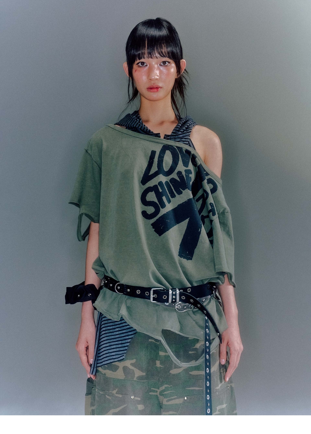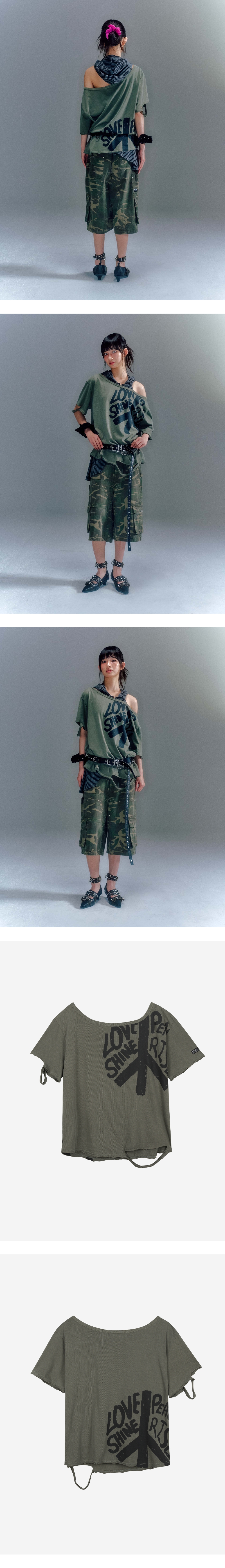 베이컨트 아카이브 디온 컷아웃 박스 티셔츠 카키