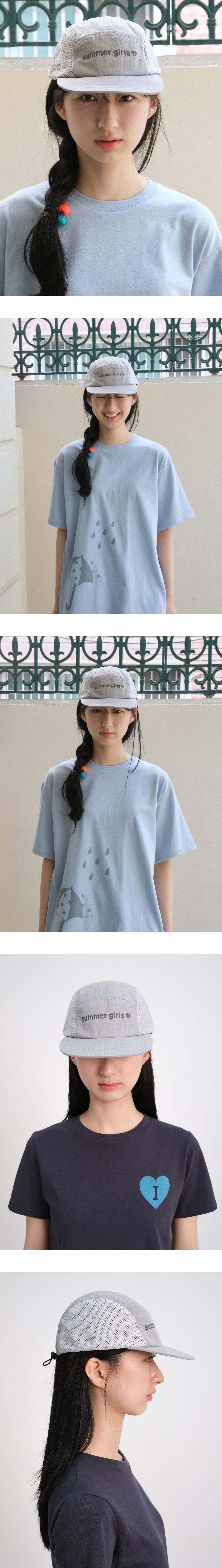 아이썸머리리의 썸머걸즈 캠프캡은 부드러운 소프트챙으로 이마에 닿는 딱딱하고 불편한 느낌을 최소화했어요. 오버핏으로 제작되어 안정적인 착용감을 제공합니다. 매쉬가 있어 땀 배출이 용이합니다. 3M 재귀반사 프린팅을 사용해 여름과 어울리는 디자인으로 제작하였습니다. 유연한 챙 구조로 제작되어 착용 시 사용자의 스타일에 맞게 자연스럽게 형태를 연출하실 수 있습니다.