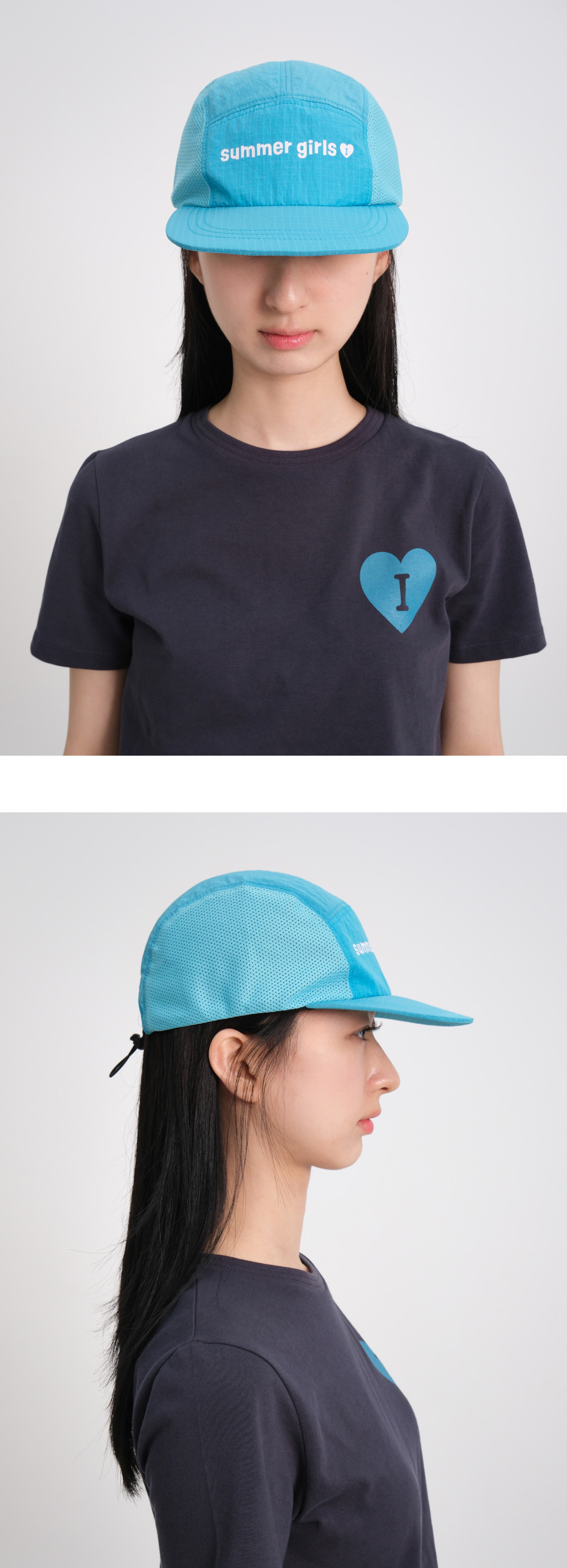 아이썸머리리의 썸머걸즈 캠프캡은 부드러운 소프트챙으로 이마에 닿는 딱딱하고 불편한 느낌을 최소화했어요. 오버핏으로 제작되어 안정적인 착용감을 제공합니다. 매쉬가 있어 땀 배출이 용이합니다. 3M 재귀반사 프린팅을 사용해 여름과 어울리는 디자인으로 제작하였습니다. 유연한 챙 구조로 제작되어 착용 시 사용자의 스타일에 맞게 자연스럽게 형태를 연출하실 수 있습니다.