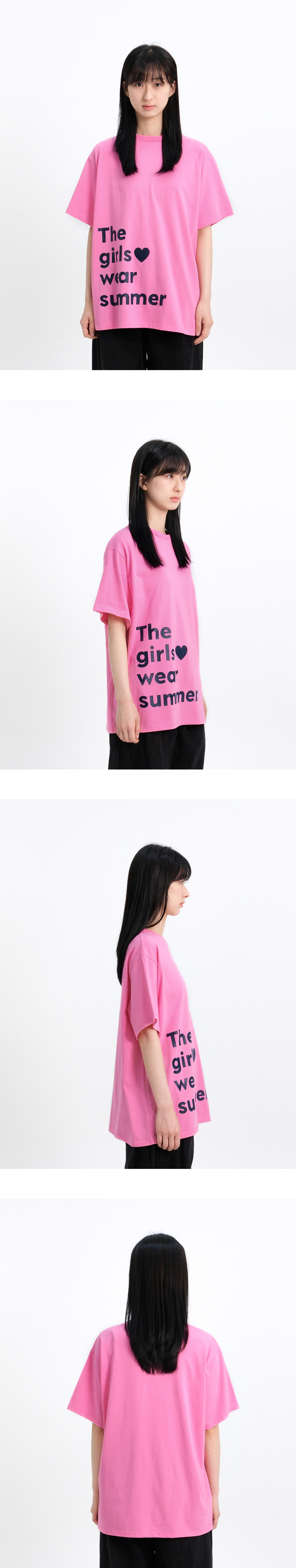 소녀는 여름을 입는다! 여름을 사랑하는 마음을 티셔츠에 담아냈습니다. 키치한 컬러 포인트로 개성 있는 스타일 연출이 가능합니다. 여유로운 실루엣의 오버사이즈 반팔티로 편안하게 착용이 가능합니다. 넉넉한 오버핏으로, 단독은 물론 이너와 레이어드하기에도 좋습니다. 20수 바이오워싱 면 원단을 사용해 부드러운 착용감과 내구성을 높였습니다.