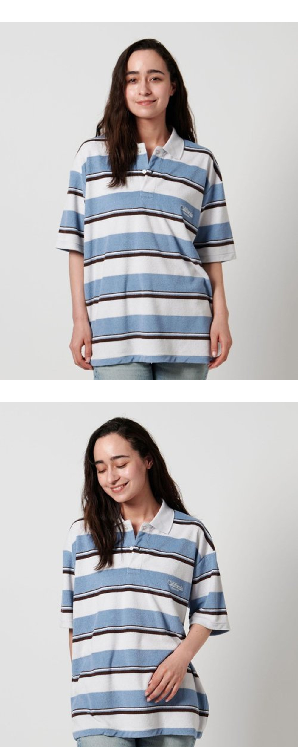 캘리포니아 제너럴 스토어 오가닉 코튼 파일 보더 폴로 셔츠 라이트 블루 - 25FW